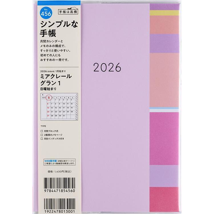 - 2025年12月始まり手帳 月間 A5 ミアクレールグラン1(456)ピンク