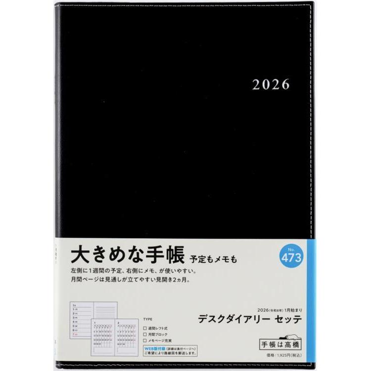 2025年12月始まり 週間レフト A5 デスクダイアリーセッテ(473)黒