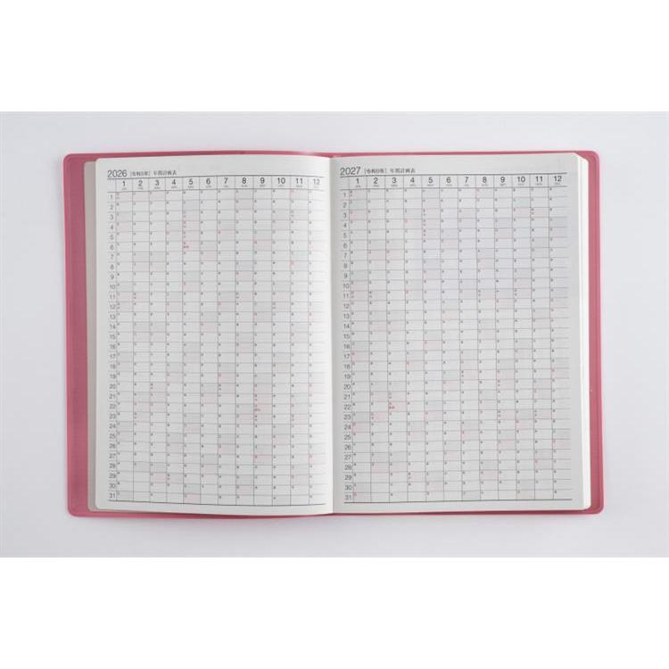 2026年1月始まり手帳 週間ブロック A5 3年卓上日誌(481)ピンク