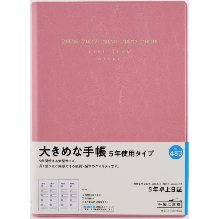 2026年1月始まり手帳 週間ブロック A5 5年卓上日誌(483)ピンク