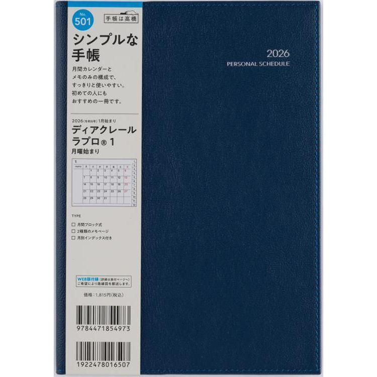 - 2025年12月始まり手帳 月間 A5 ディアクレールラプロ1(501)ネイビー