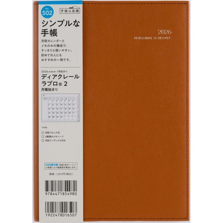 2025年12月始まり手帳 月間 A5 ディアクレールラプロ2(502)キャラメル