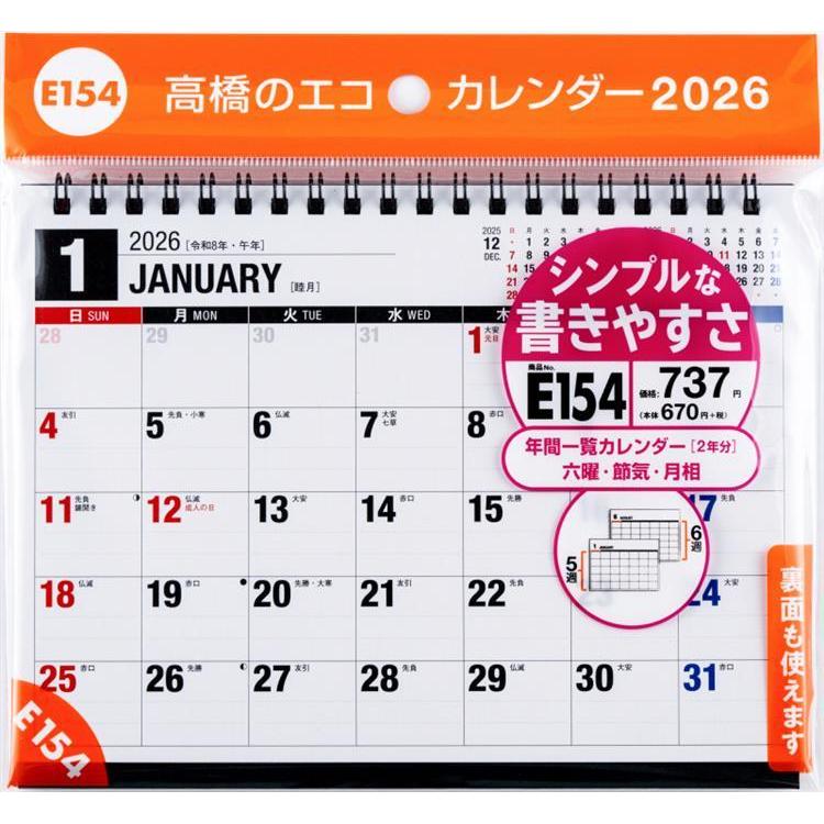 2026年1月始まり 卓上 B6 エコカレンダー E154