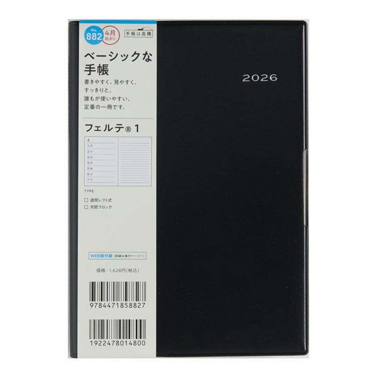 - 2026年3月始まり手帳 週間レフト B6 フェルテ1(882)黒