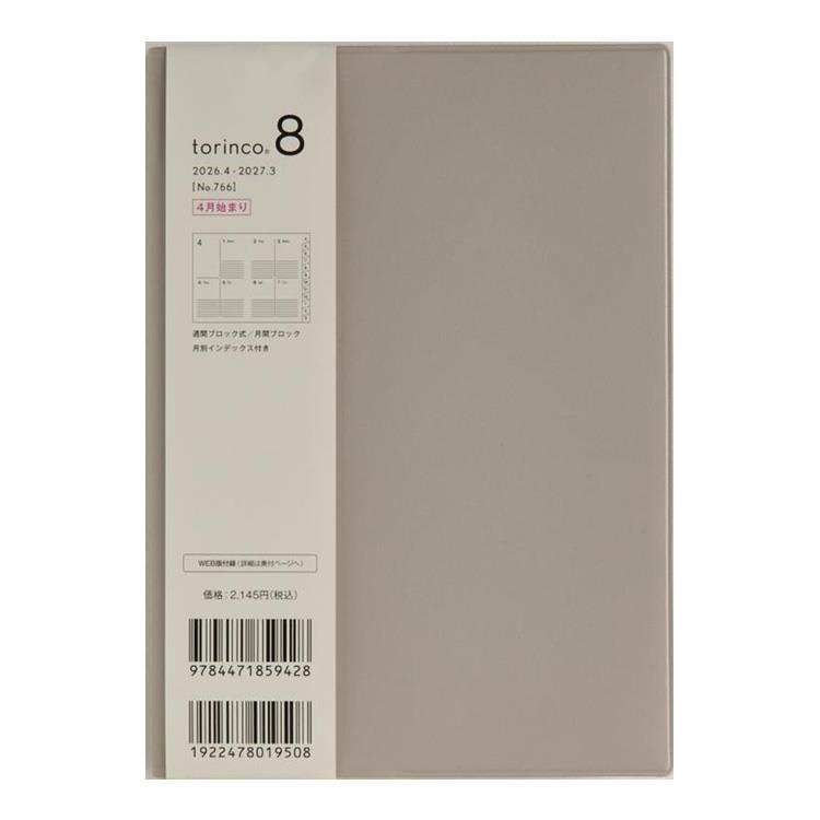 - 2026年4月始まり手帳 週間ブロック B6 トリンコ8(766)ソフトグレー