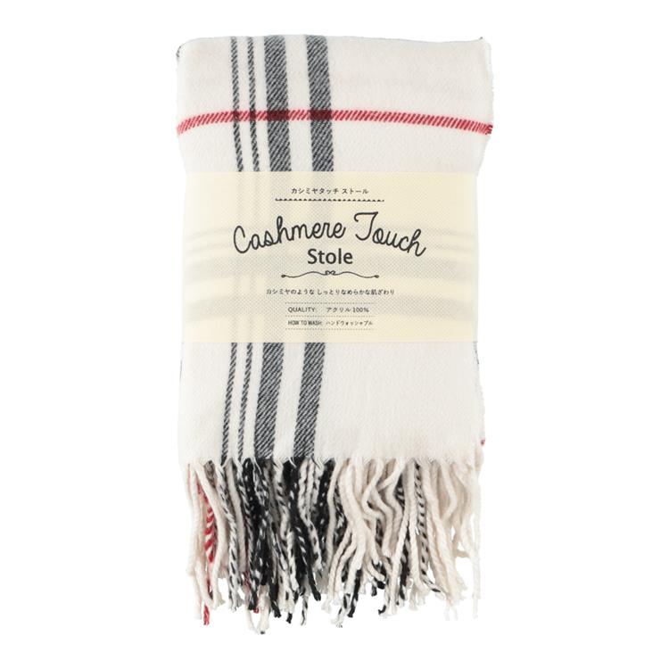 カシミヤタッチストール トラッドチェック ホワイト【ロフト限定】