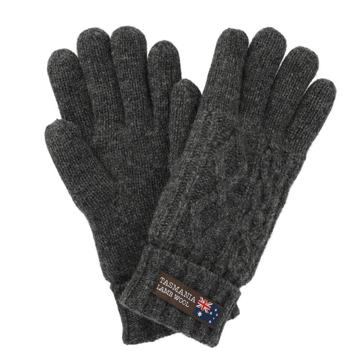 グローブ ケーブル編み チャコール タスマニアラムウール【ロフト限定】