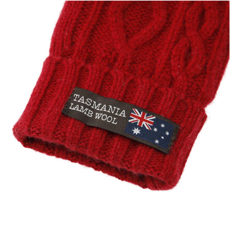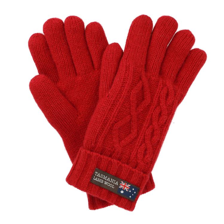 グローブ ケーブル編み レッド タスマニアラムウール【ロフト限定】