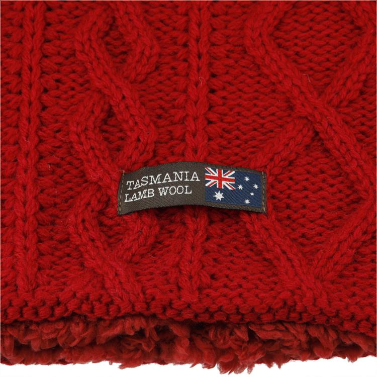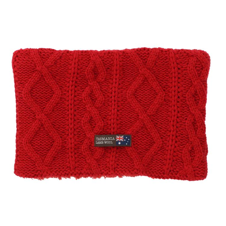 ネックウォーマー ケーブル編み レッド タスマニアラムウール【ロフト限定】