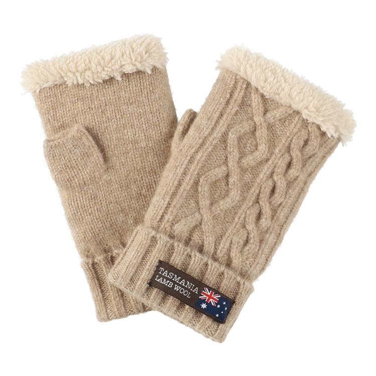 フィンガーレスグローブ ケーブル編み ベージュ タスマニアラムウール【ロフト限定】