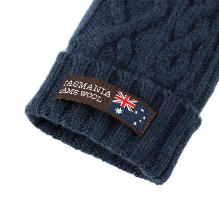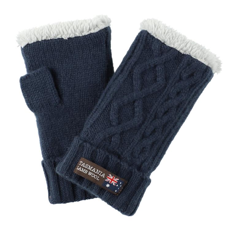 フィンガーレスグローブ ケーブル編み ネイビー タスマニアラムウール【ロフト限定】