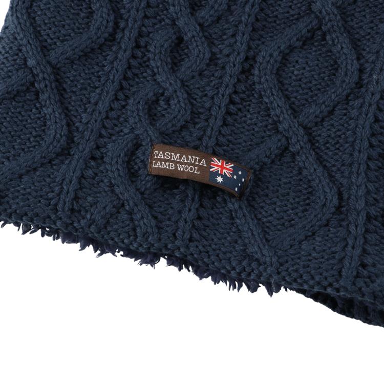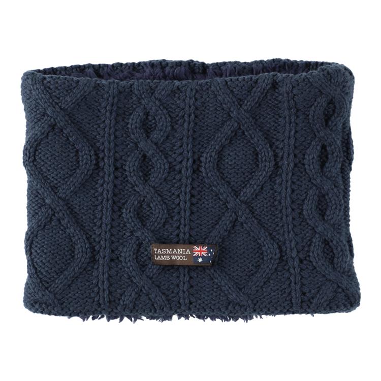 ネックウォーマー ケーブル編み ネイビー タスマニアラムウール【ロフト限定】