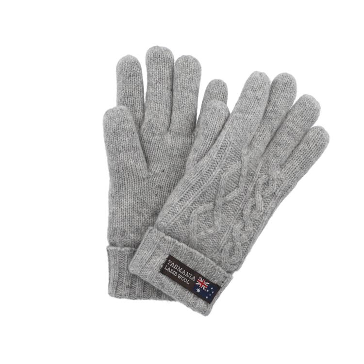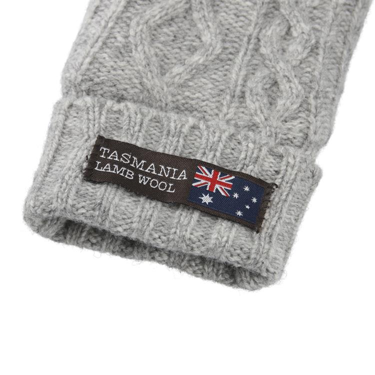 グローブ ケーブル編み ライトグレー タスマニアラムウール【ロフト限定】
