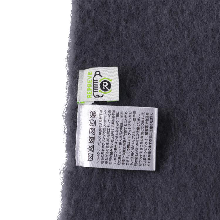 使用済ペットボトルなどのリサイクル素材から作られたマフラー。