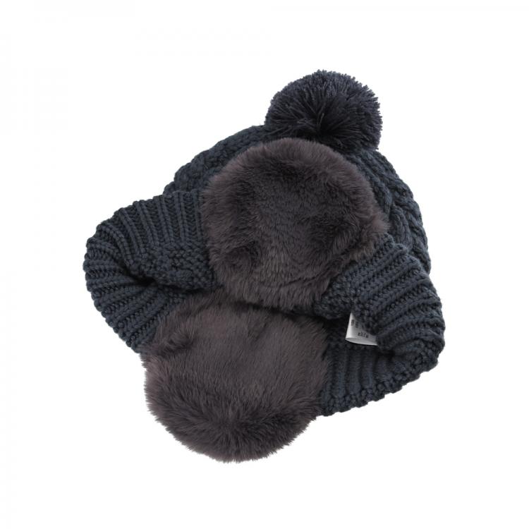 ボア素材の耳が付いたトレンド感のあるデザイン。ケーブル編みにすることで非常に柔らかい着心地に仕上げました。