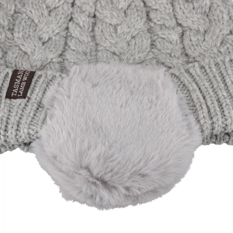 ケーブル編みボア耳付ワッチ タスマニアラムウール ライトグレー