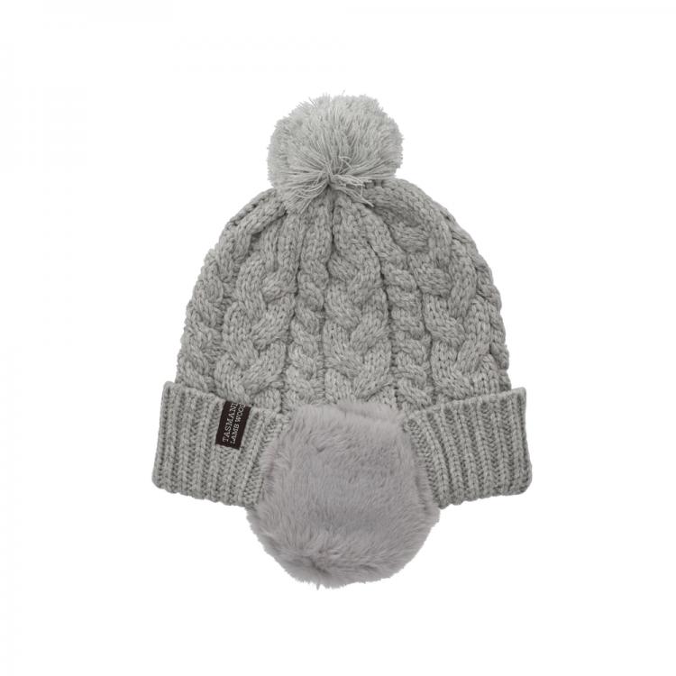 - ケーブル編みボア耳付ワッチ タスマニアラムウール ライトグレー
