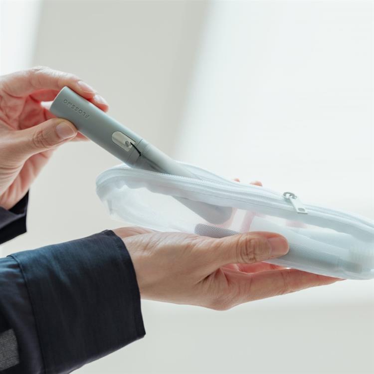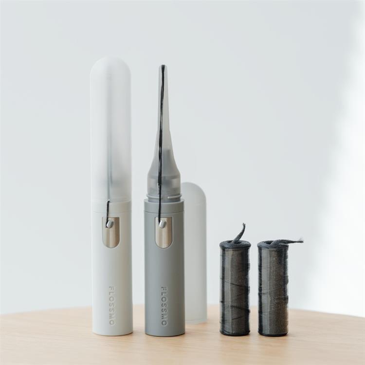 『フロスモ』は、ロールタイプのフロスでありながら、ホルダータイプのフロスのような手軽さをあわせ持ったペン形状のロールフロスです。