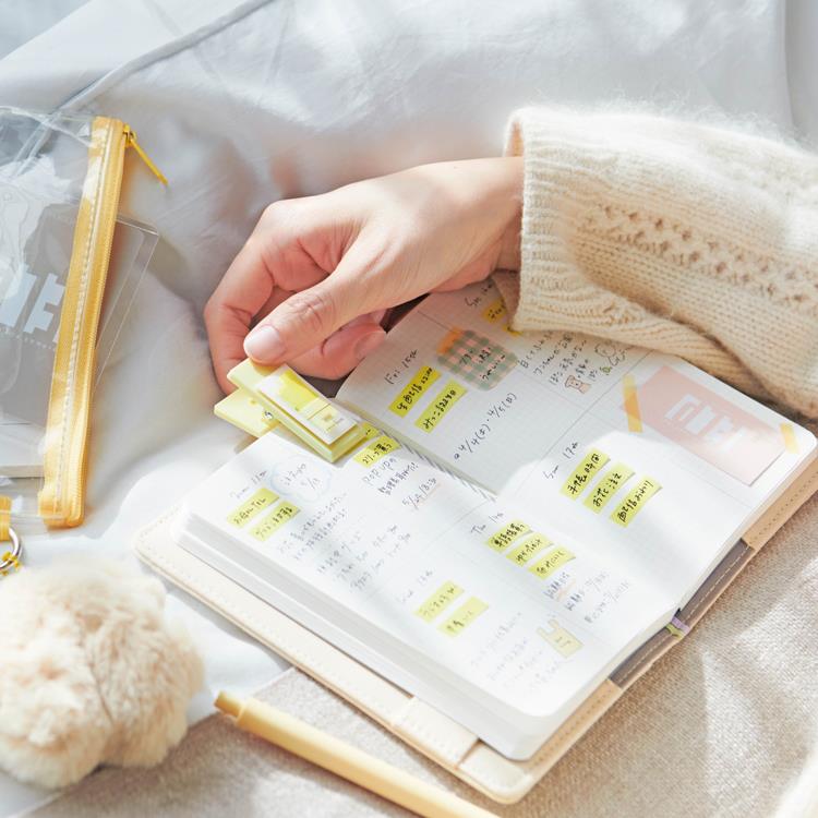 コンパクトなサイズでページに挟みやすく、付箋と組み合わせて目印として使える使い心地。さりげない機能性。