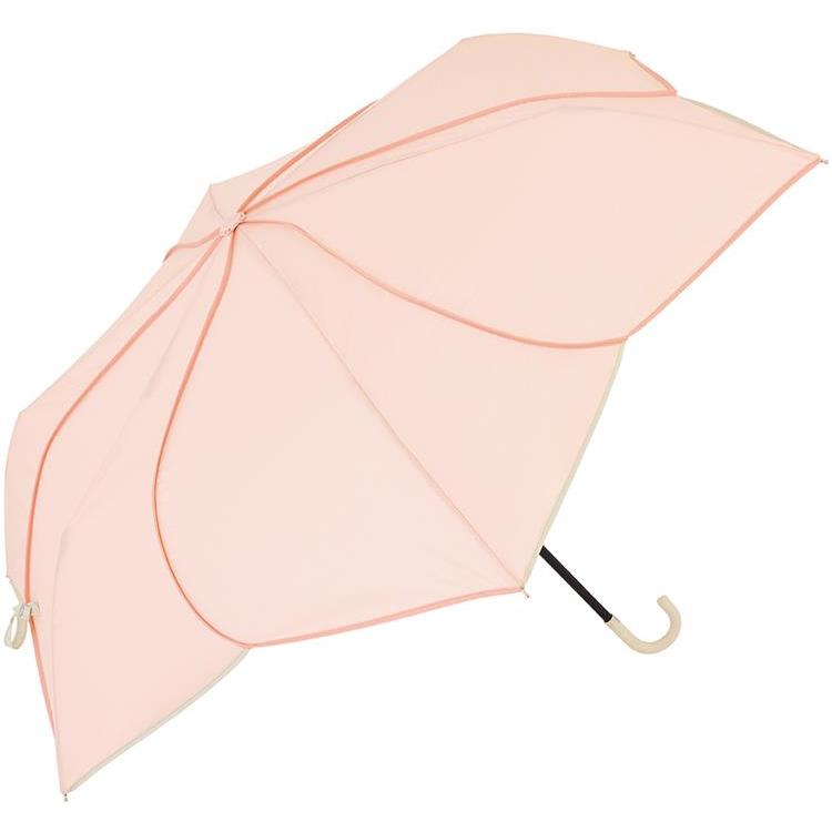 お花のような可憐なカラーでスタイリッシュなカットワークが目を引くデザインの折りたたみ傘です。