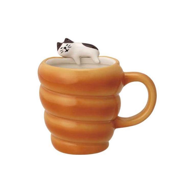 ちょこんと乗った猫が癒しを添え、朝のコーヒーやおやつ時間をほっこり演出。