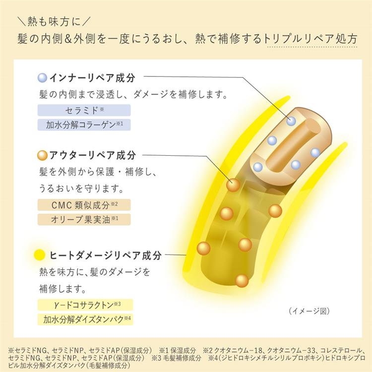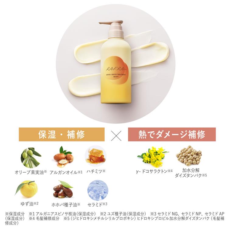 ・ラフラ独自「髪の内側&外側を一度にうるおし、熱で補修するトリプルリペア処方」