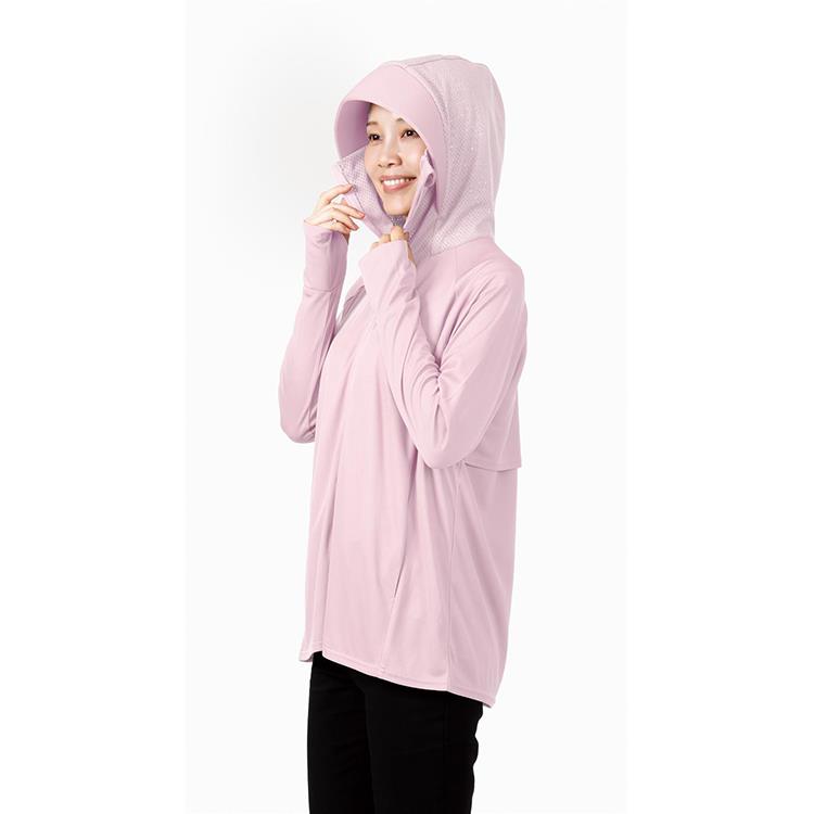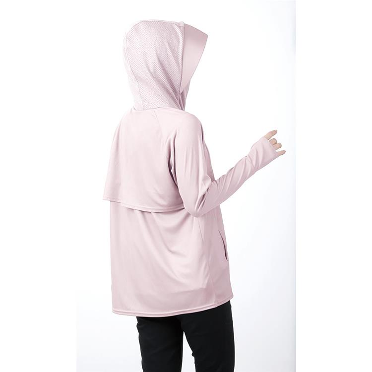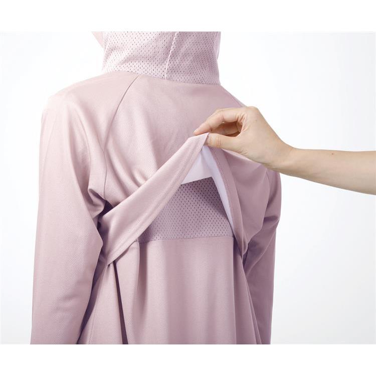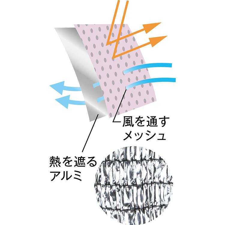 フードの内側にアルミ生地を重ねあわせ、照り付ける太陽からの強い紫外線と熱からカラダをガード。