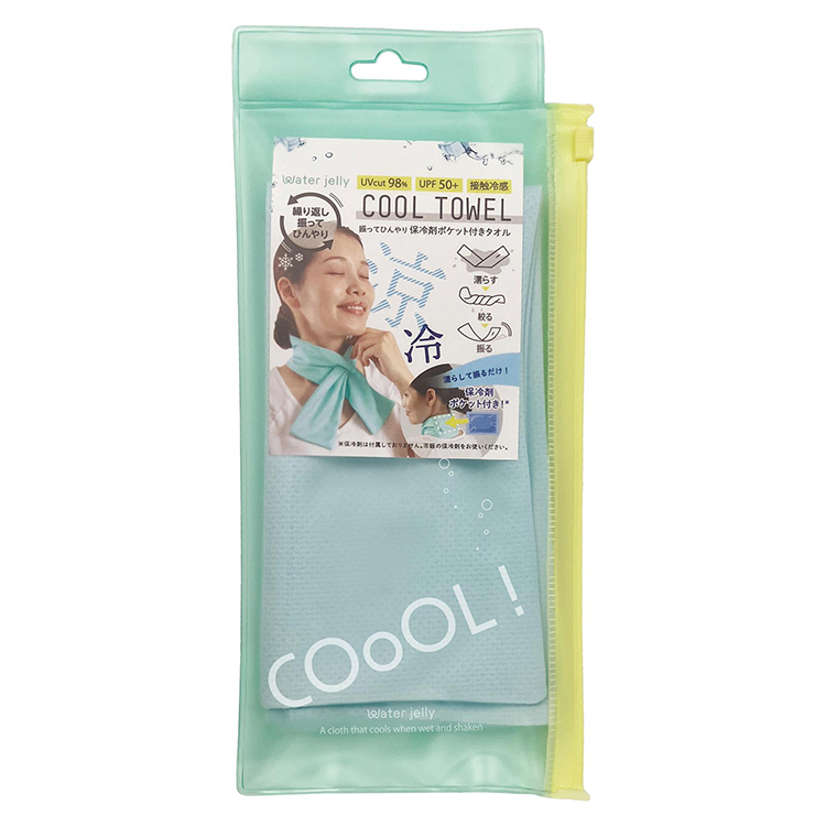 - 濡らして、絞って、振って使います。保冷剤を首筋に入れえることができます。
