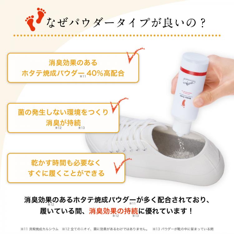 靴の中に振りかけて靴のニオイをケアできるパウダー