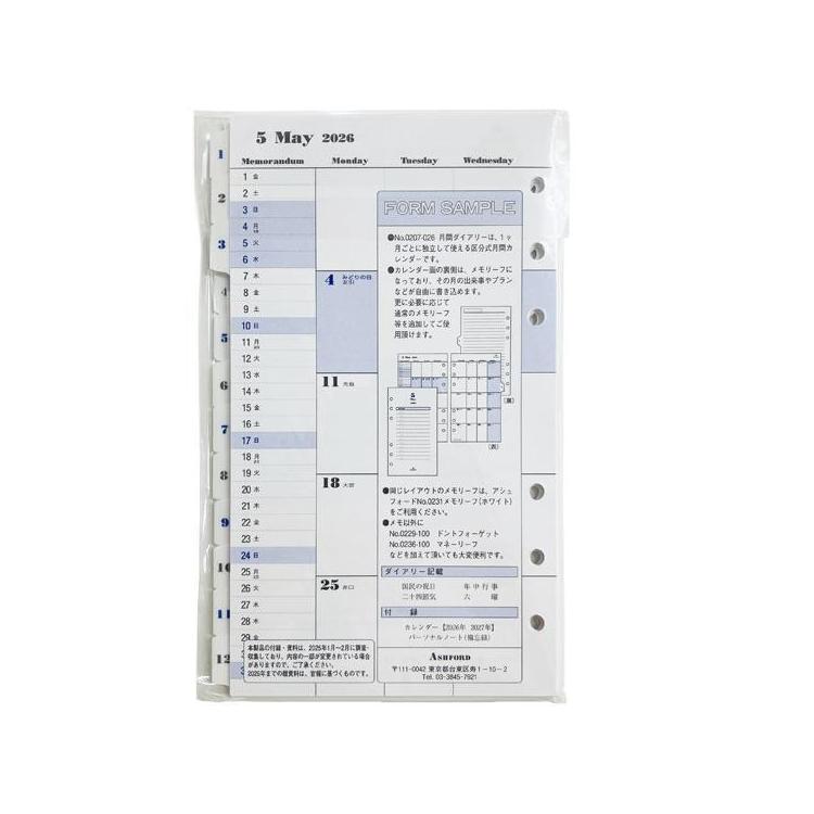 - 2026年1月始まりシステム手帳用リフィル バイブル 月間 Index&メモプラス