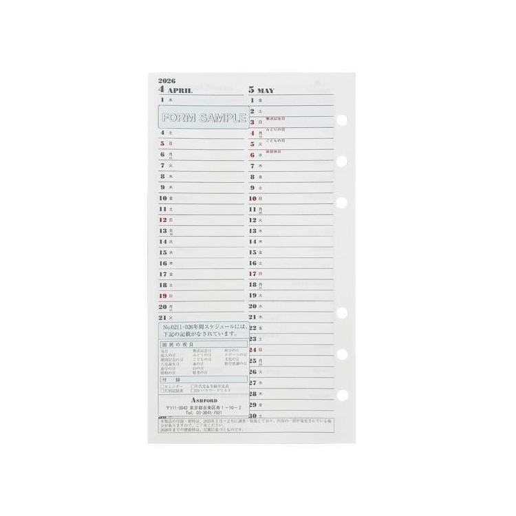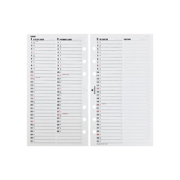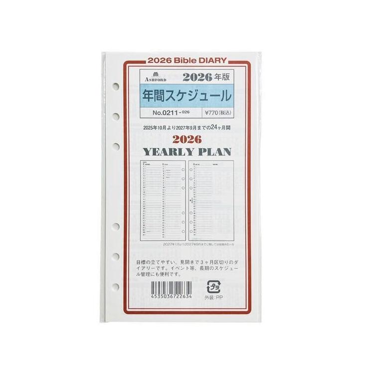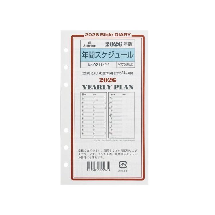 - 2025年10月始まりシステム手帳用リフィル バイブル 年間スケジュール