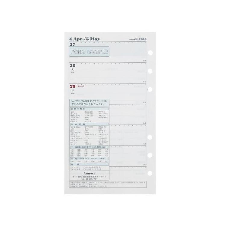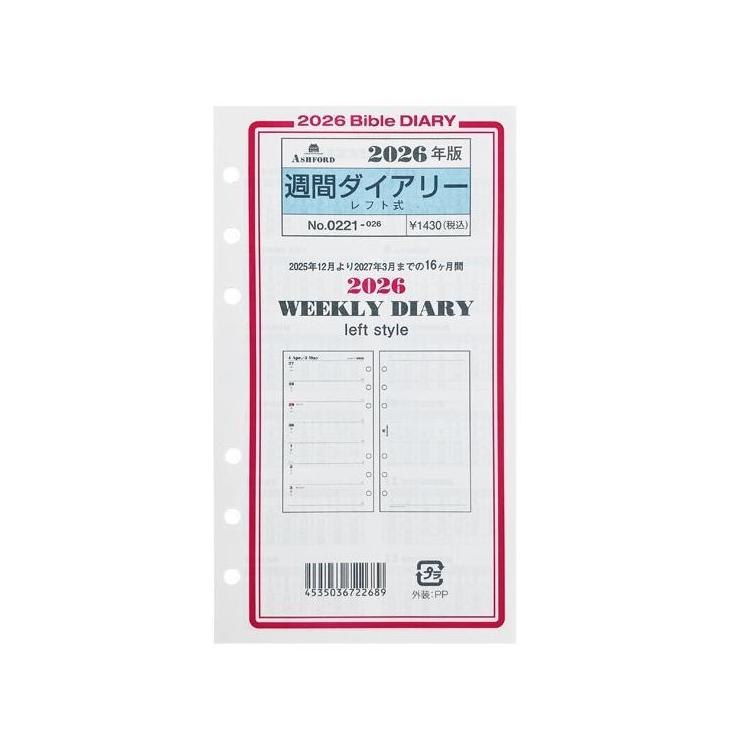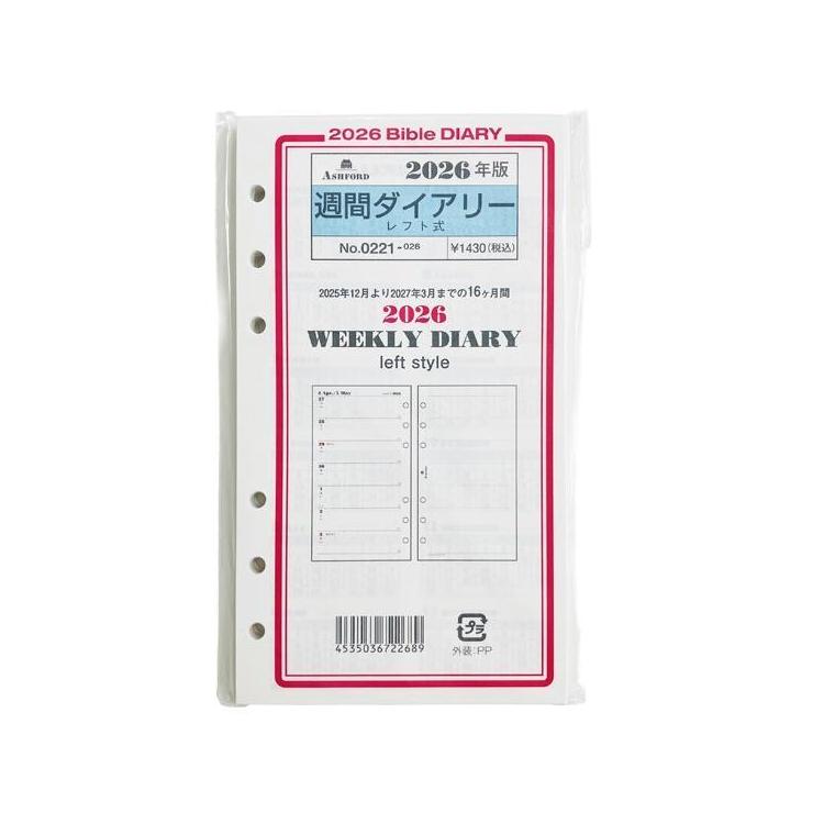 - 2025年12月始まりシステム手帳用リフィル バイブル 週間 レフト