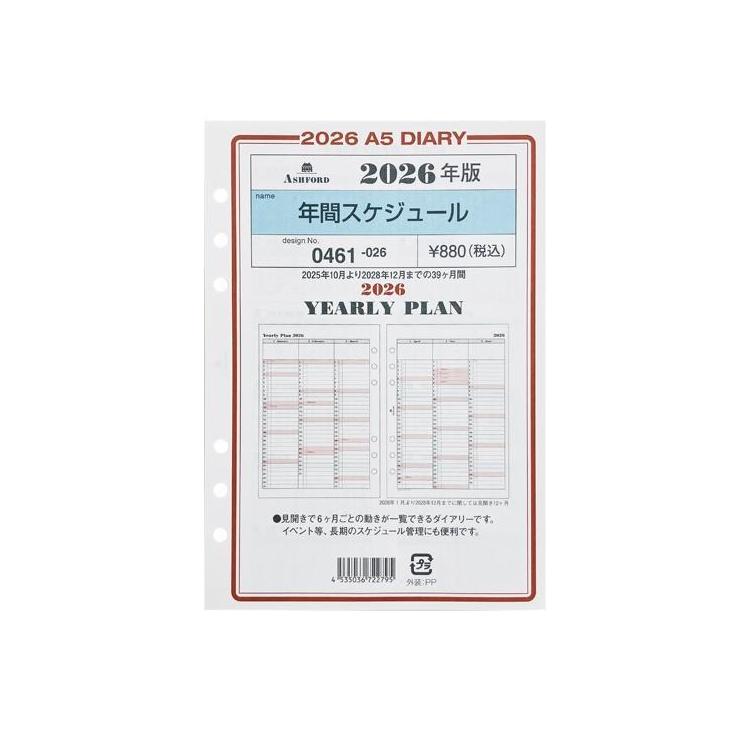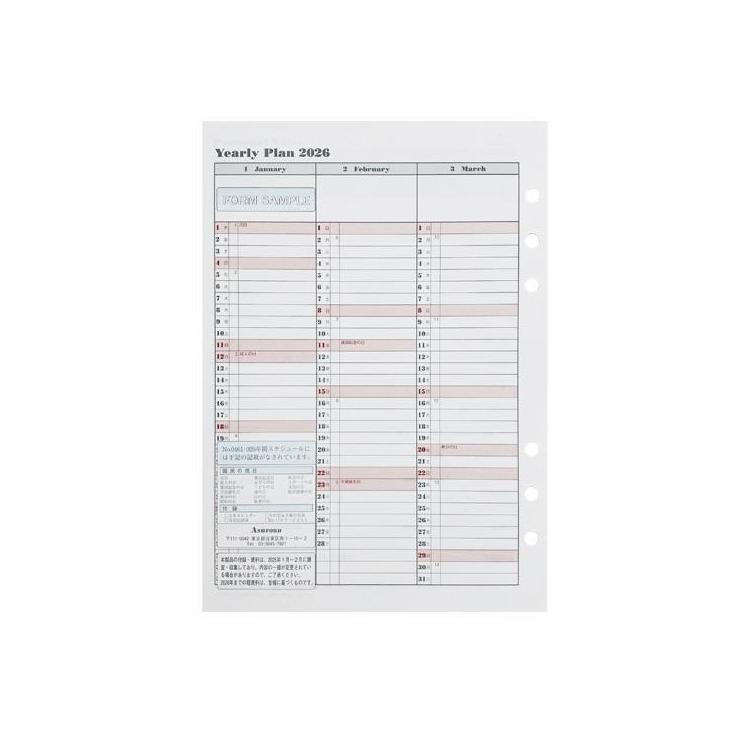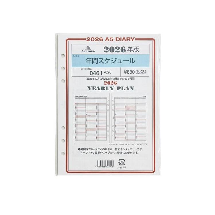 - 2025年10月始まりシステム手帳用リフィル A5 年間スケジュール