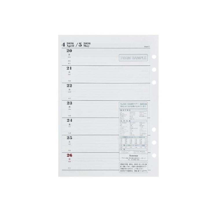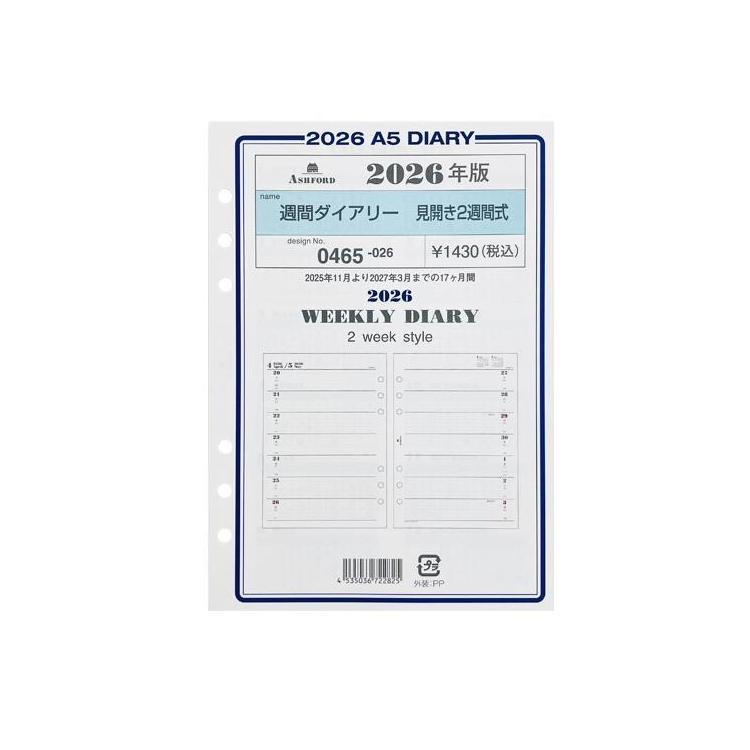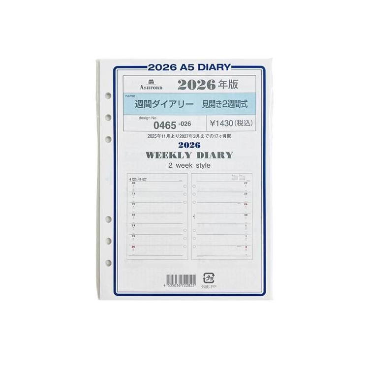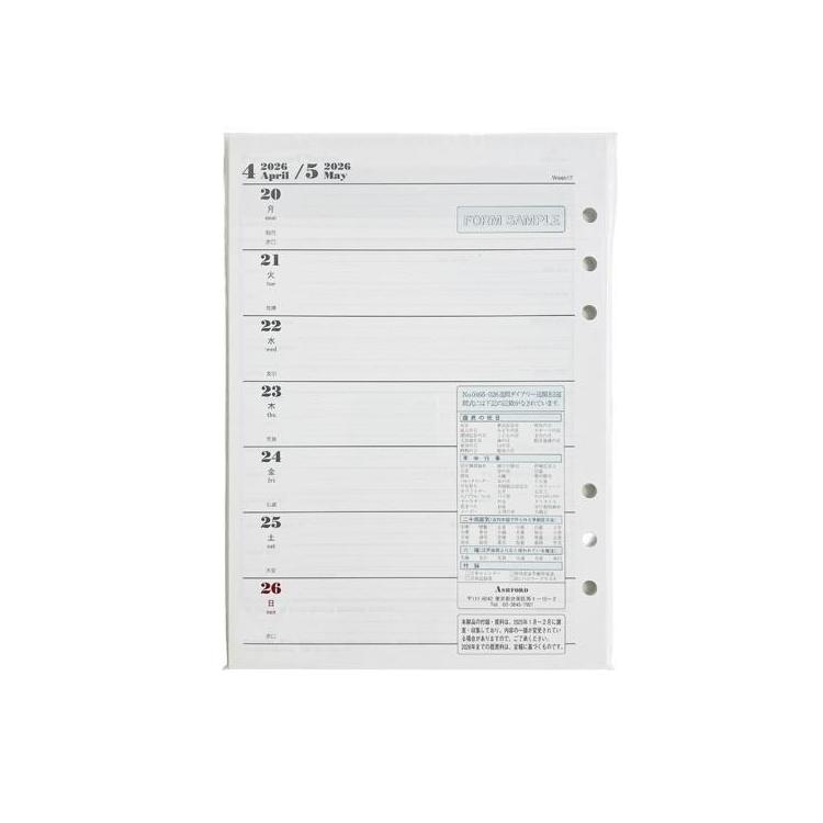 - 2025年11月始まりシステム手帳用リフィル A5 週間 見開き2週間