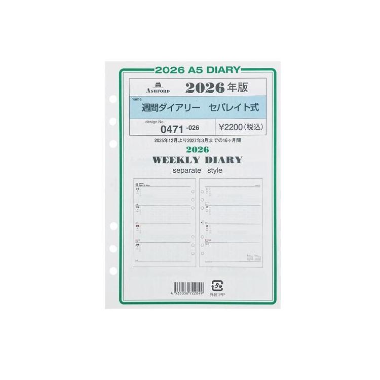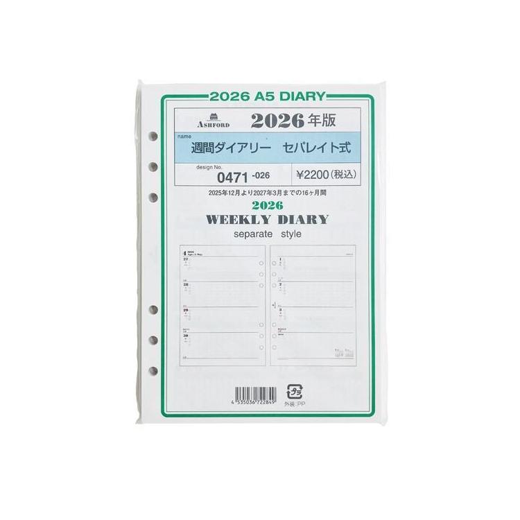 2025年12月始まりシステム手帳用リフィル A5 週間 セパレイト