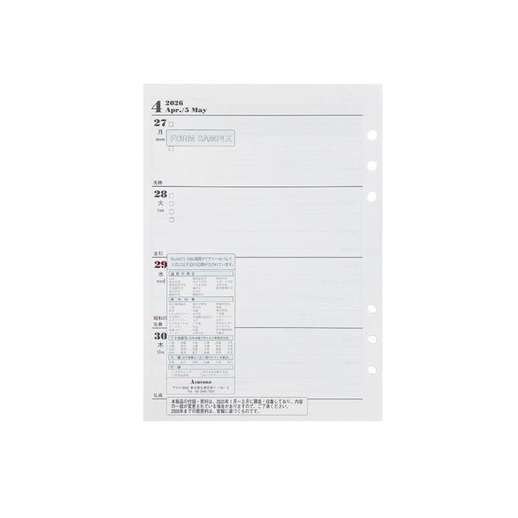 - 2025年12月始まりシステム手帳用リフィル A5 週間 セパレイト