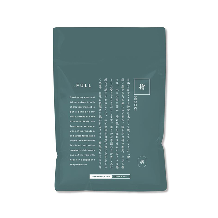 ヒノキ油(香料成分)、ヒノキ水配合(美容保湿成分)。