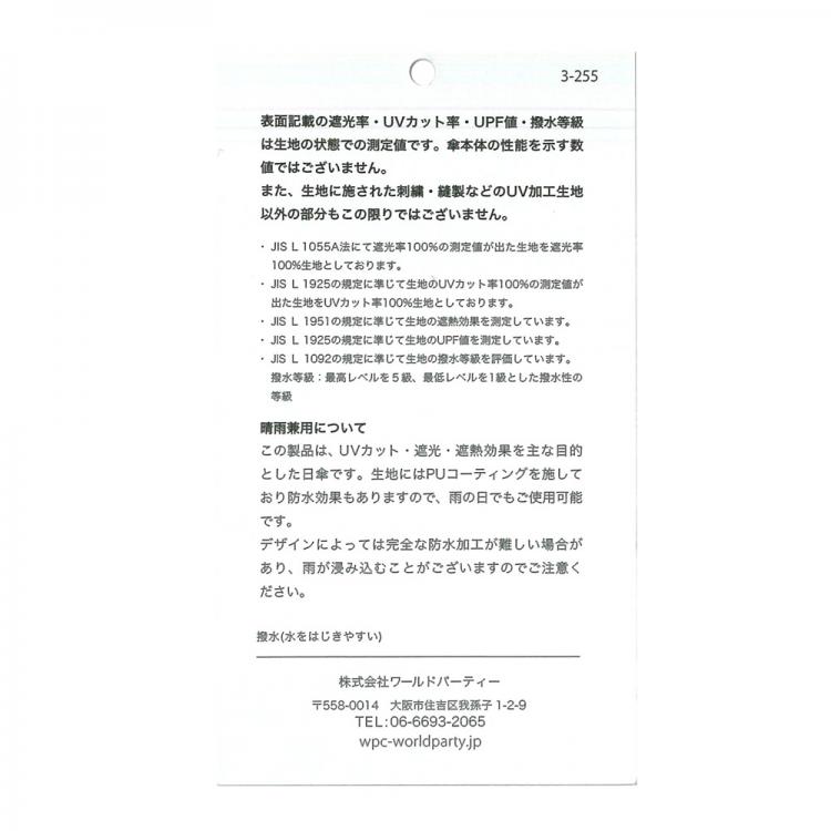 ※激しい雨や長時間の雨傘としてのご使用は、雨漏りや生地に水がしみ込む恐れがございます。