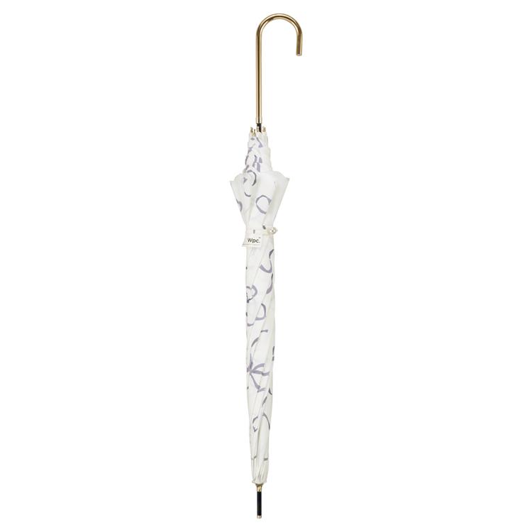 上品なリボン柄にハートが混ざった、大人フェミニンなデザインの雨傘です。
