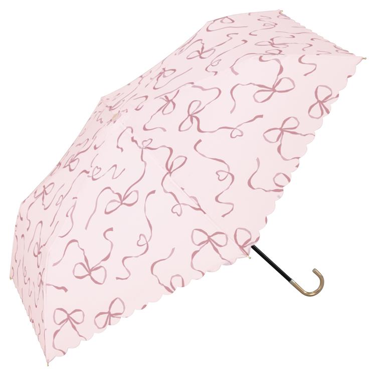 上品なリボン柄にハートが混ざった、大人フェミニンなデザインの折りたたみ傘です。