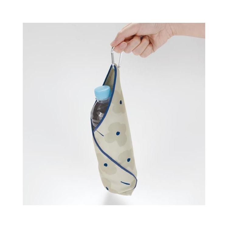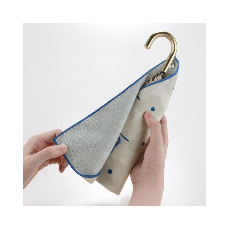 吸水性に優れている生地同士がぴたっとくっつくので、濡れた傘やペットボトルをくるっと包めばかばんの中身を水滴から守ることができます。