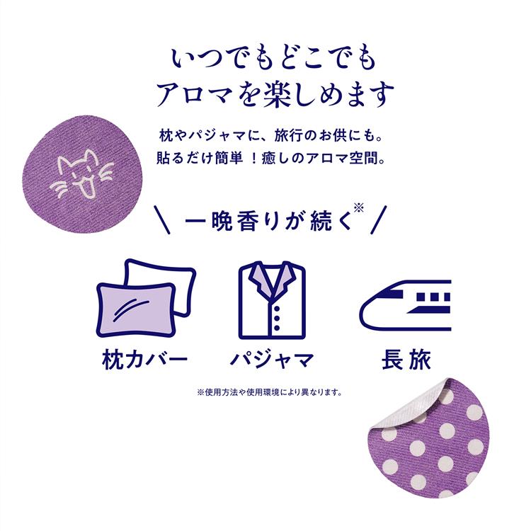 - シールをはがして、枕や布団、衣服などに直接貼り付けて香りをお楽しみください。