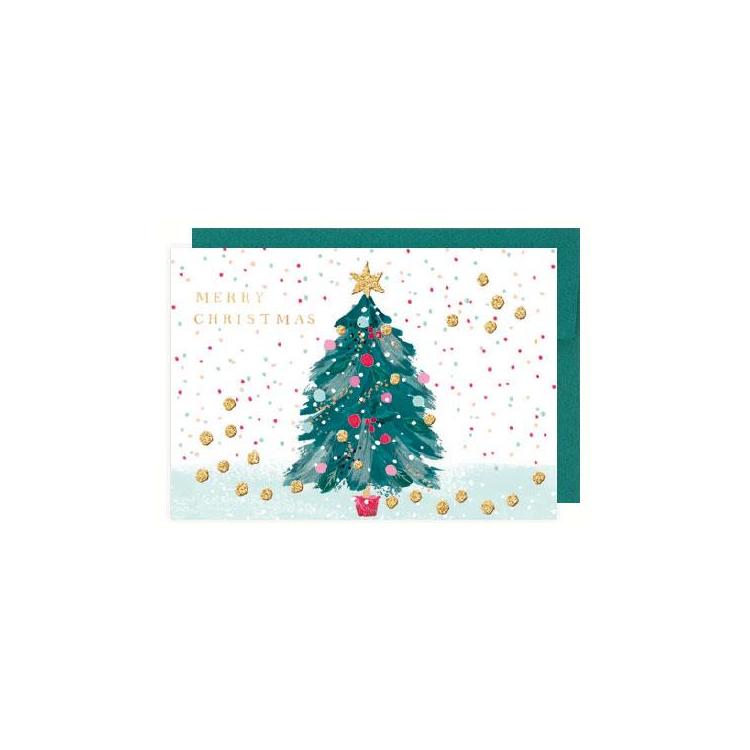 海外のデザイナーによるカラフルなツリーのイラストのクリスマスカードです。