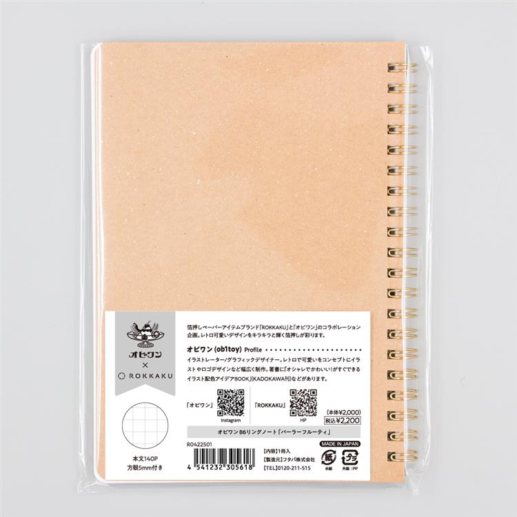 - 箔押しリングノート B6 オビワン×ロッカク パーラーフルーティー