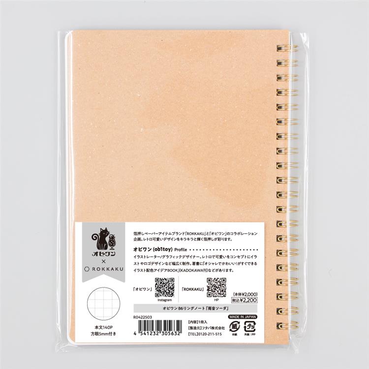 箔押しリングノート B6 オビワン×ロッカク 雨音ソーダ