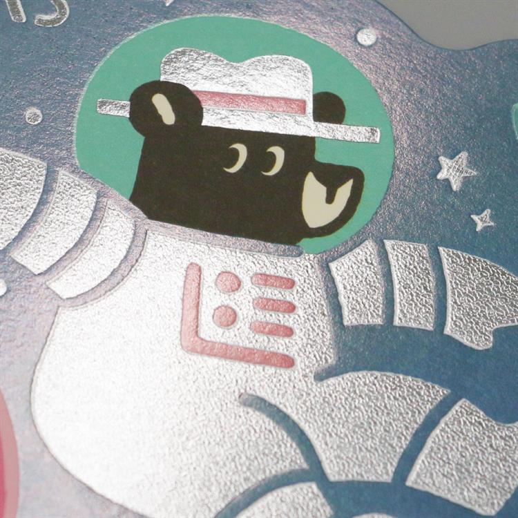 - ダイカットポストカード オビワン×ロッカク レトロ郵便 旅熊 ギャラクシーツアー