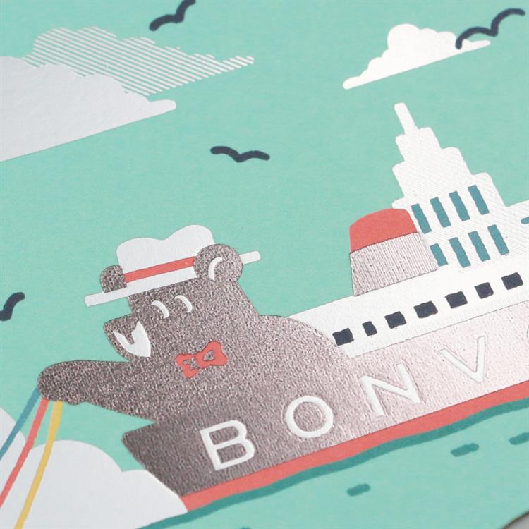 人気イラストレーター・ob1toy(オビワン)さんが描くレトロ郵便シリーズより、旅を続けるクマ「旅熊 TOURS」と箔押しブランド「ROKKAKU(ロッカク)」のコラボレーション。