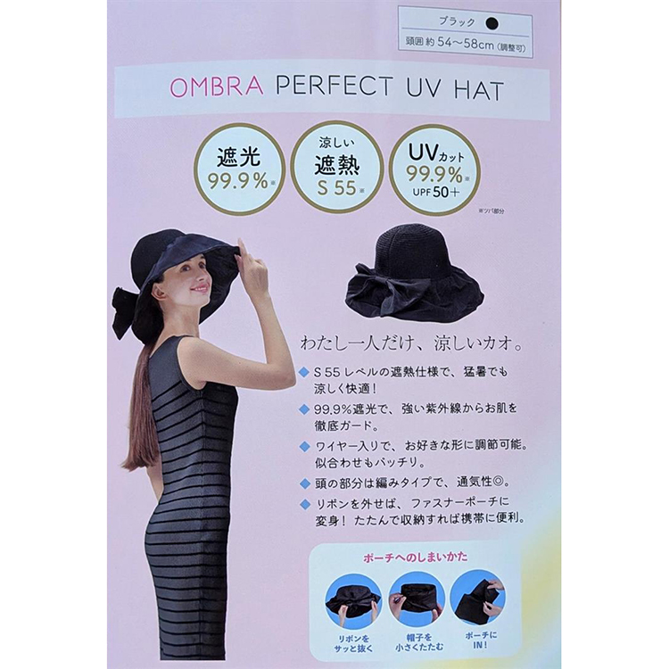 通気性バツグン!ワイヤーでスタイル自由折りたたみUVハット。リボンポーチ付き。