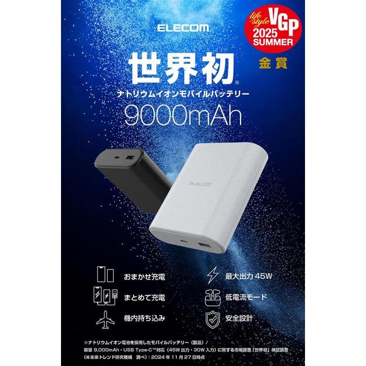 ナトリウムイオン電池を採用したモバイルバッテリー(製品)/量 9000mAh・USB Type-C(TM)対応(45W出力・30W入力)に関する市場調査 「世界初」検証調査((株)未来トレンド研究機構調べ)2024年11月27日時点