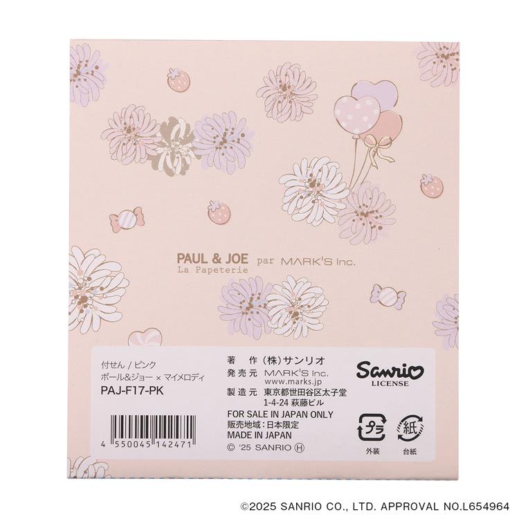 フランスのファッションブランド「PAUL & JOE(ポールアンドジョー)」の花柄ブランドアイコン「クリザンテーム」とサンリオの人気キャラクター「マイメロディ」のキュートな柄がプリントされた付せんです。